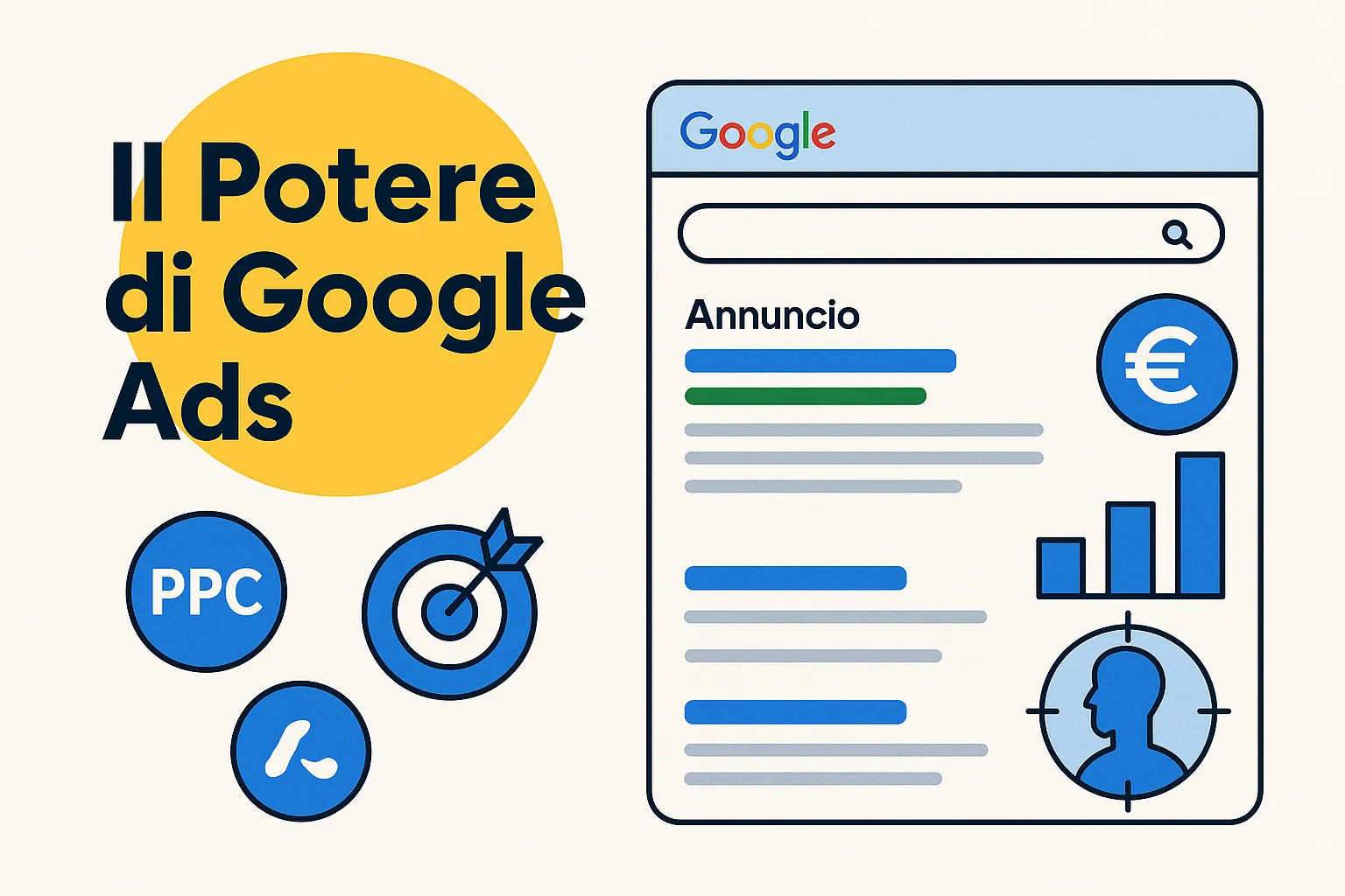 Immagina di poter entrare in cima ai risultati di Google non dopo mesi di lavoro SEO, ma nell'istante stesso in cui la tua campagna parte: ecco il potere di Google Ads. Si tratta di uno strumento pay‑per‑click (PPC), cioè paghi solo quando qualcuno clicca sul tuo annuncio, che ti permette di indirizzare il tuo messaggio proprio a chi sta cercando quello che offri. A differenza dei metodi organici, gli annunci Google garantiscono visibilità immediata e un controllo granitico: puoi definire con precisione budget giornaliero, fascia oraria, aree geografiche e persino caratteristiche demografiche o interessi del tuo pubblico ideale.
