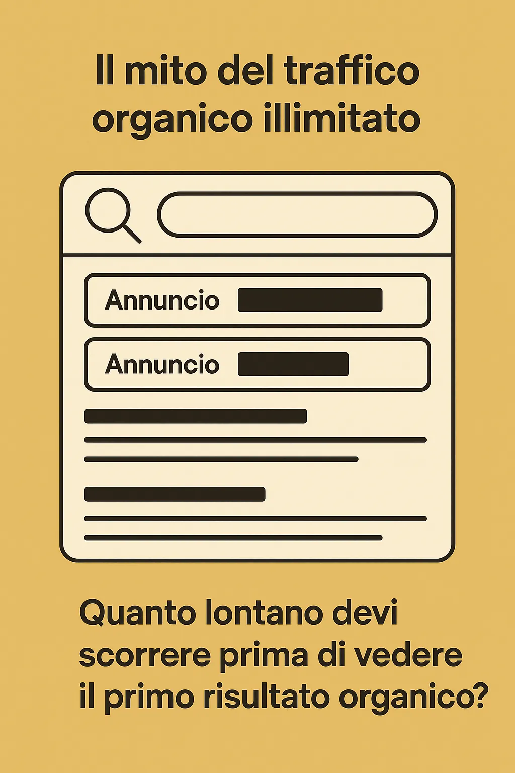 Ecco perché è fondamentale non cadere nel mito del traffico organico illimitato. Una strategia completa deve integrare anche forme di traffico a pagamento, per garantire una presenza costante e immediata quando gli utenti cercano esattamente ciò che offri.