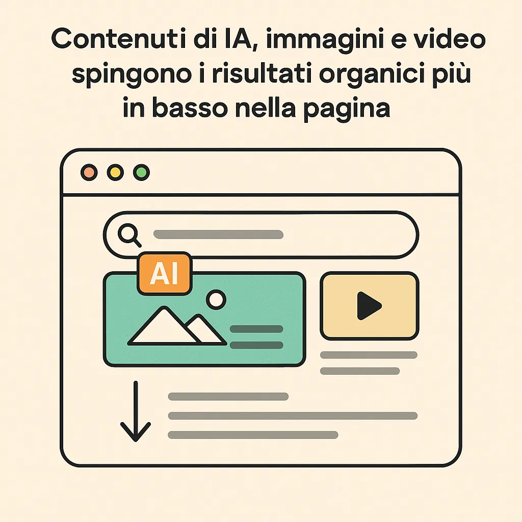 Facciamo un esperimento semplice: apri Google e cerca un termine qualsiasi, magari uno legato alla tua attività. Quanto devi scorrere la pagina prima di vedere il primo risultato organico? Probabilmente devi passare oltre gli annunci sponsorizzati, snippet in evidenza, contenuti video e spesso anche suggerimenti AI generati direttamente da Google. Quello che una volta era "posizione numero uno" oggi può trovarsi a metà pagina o anche più in basso.